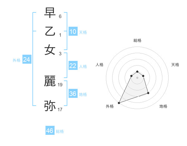 早乙女 麗弥さんの総格は46画の1点