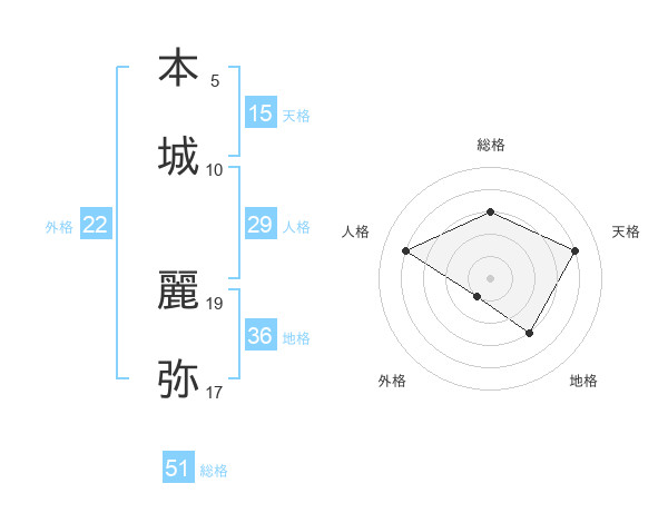 本城 麗弥さんの総格は51画の3点!