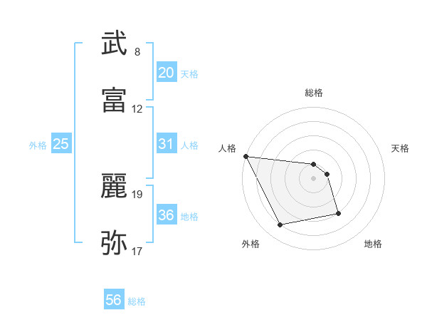 武富 麗弥さんを姓名の画数から五運を鑑定
