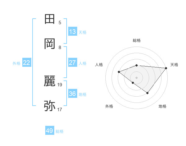 田岡 麗弥さんの天格は13画の5点!