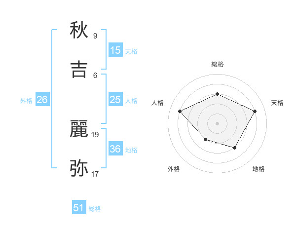 秋吉 麗弥さんを姓名の画数から五運を鑑定