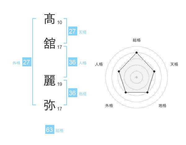 髙舘 麗弥さんの総格は63画の4点!