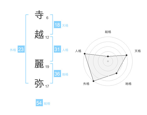 寺越 麗弥さんの外格は23画の5点!