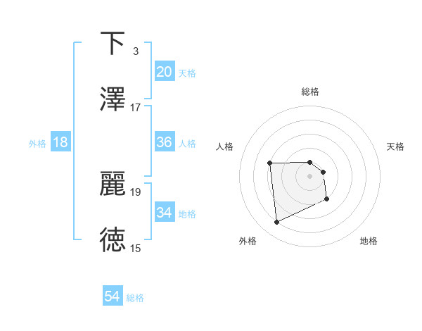 下澤 麗徳さんを姓名の画数から五運を鑑定