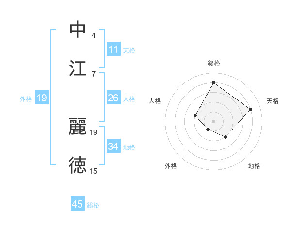 中江 麗徳さんの総格は45画の4点!