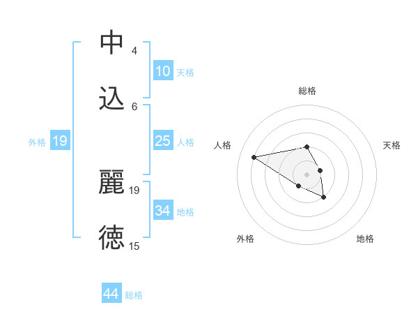 中込 麗徳さんを姓名の画数から五運を鑑定