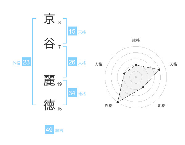 京谷 麗徳さんの総格は49画の2点!