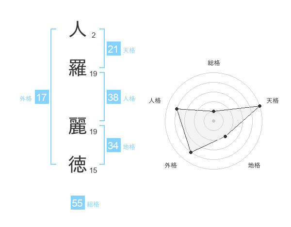 人羅 麗徳さんの総格は55画の1点!