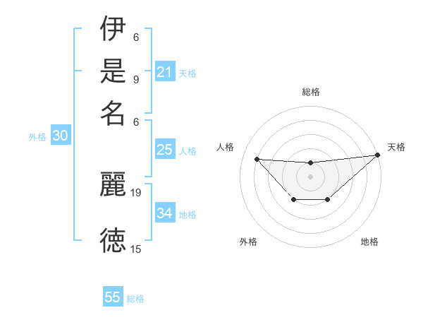伊是名 麗徳さんの総格は55画の1点!