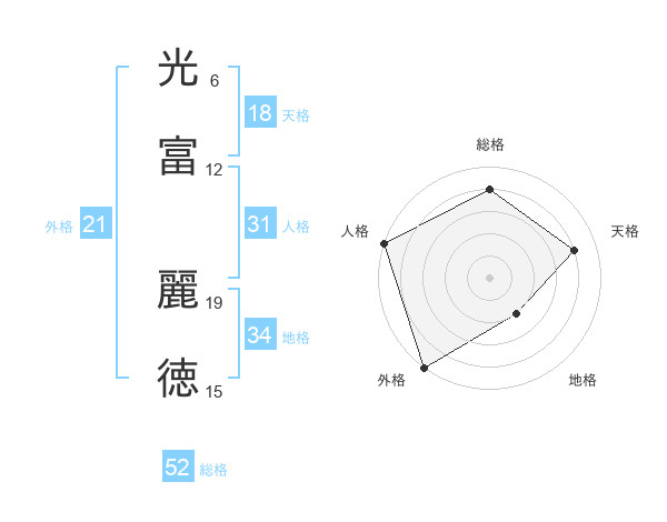 光富 麗徳さんの総格は52画の4点!