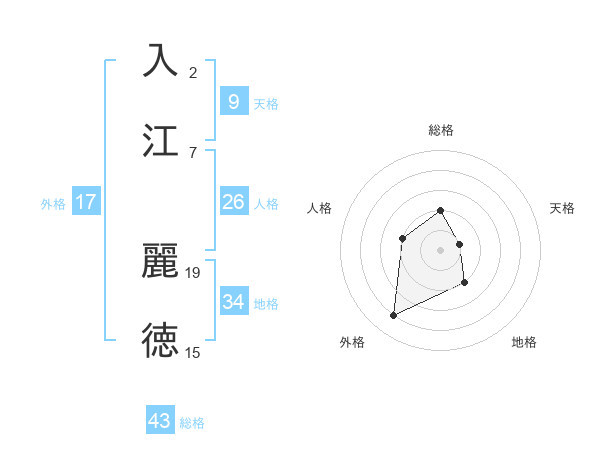 入江 麗徳さんを姓名の画数から五運を鑑定