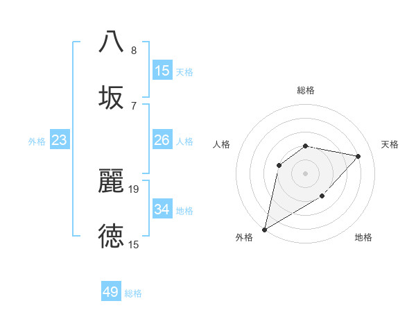 八坂 麗徳さんの総格は49画の2点!