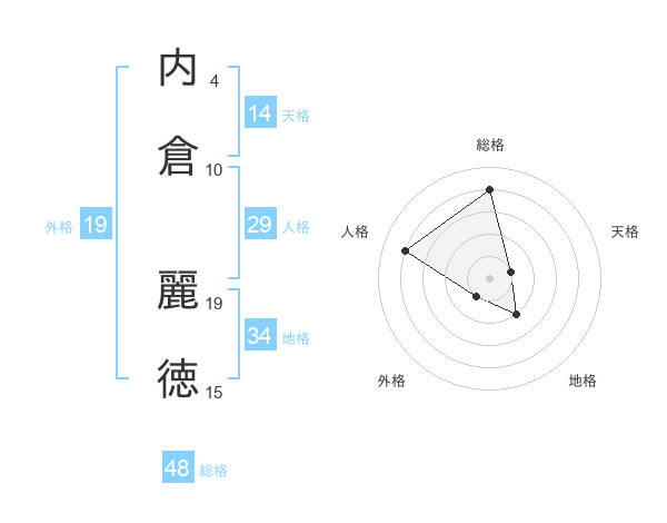 内倉 麗徳さんの総格は48画の4点!