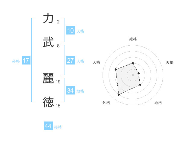 力武 麗徳さんを姓名の画数から五運を鑑定