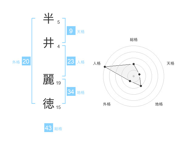半井 麗徳さんの総格は43画の2点!