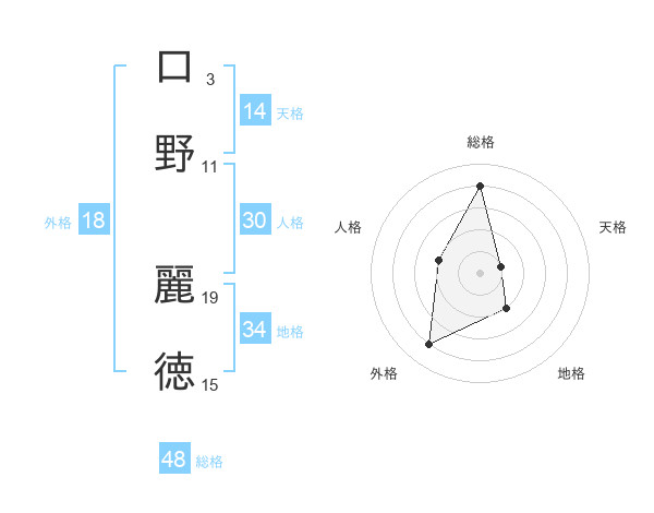 口野 麗徳さんを姓名の画数から五運を鑑定
