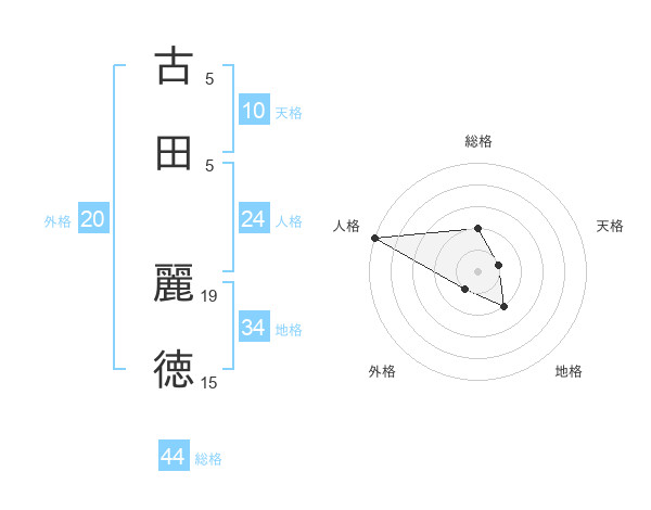 古田 麗徳さんを姓名の画数から五運を鑑定