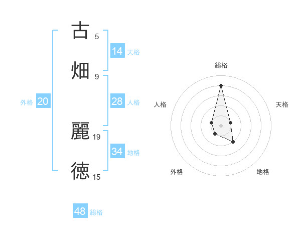 古畑 麗徳さんの総格は48画の4点!