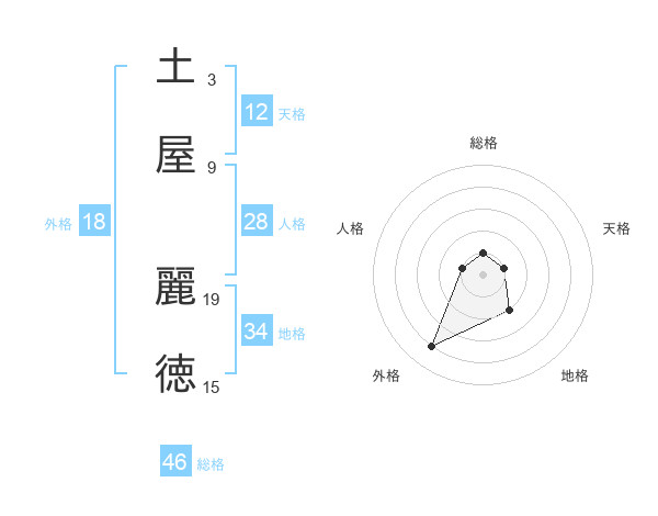土屋 麗徳さんを姓名の画数から五運を鑑定