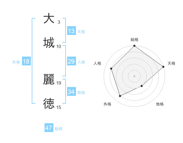 大城 麗徳さんの総格は47画の5点!