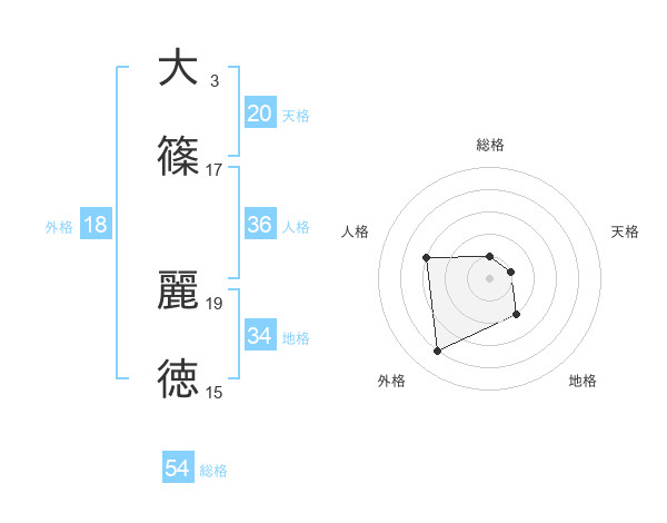 大篠 麗徳さんの天格は20画の1点!
