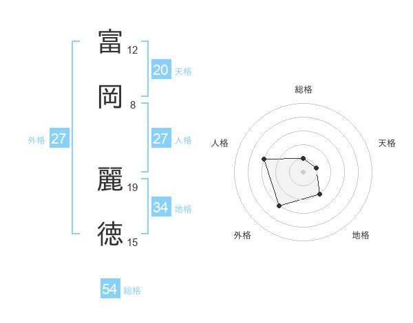 富岡 麗徳さんの天格は20画の1点!