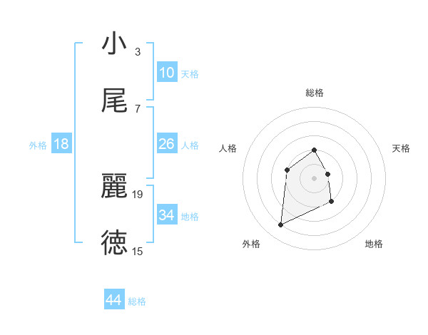 小尾 麗徳さんの総格は44画の2点!