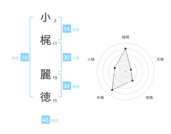 小梶 麗徳さんを姓名の画数から五運を鑑定