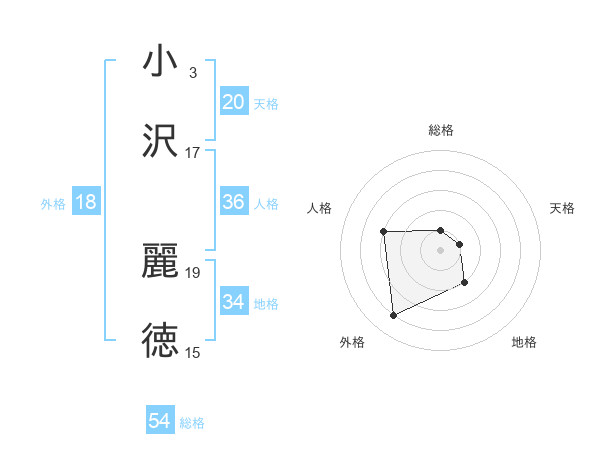小沢 麗徳さんの天格は20画の1点!