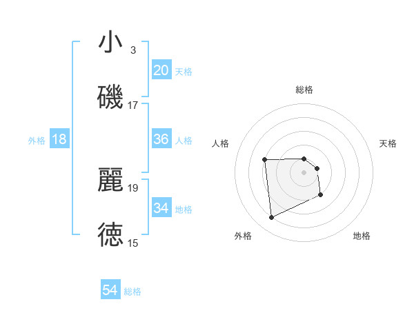 小磯 麗徳さんの天格は20画の1点!