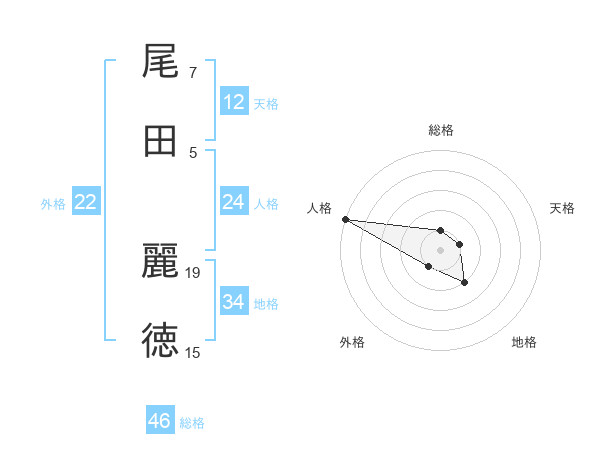 尾田 麗徳さんを姓名の画数から五運を鑑定