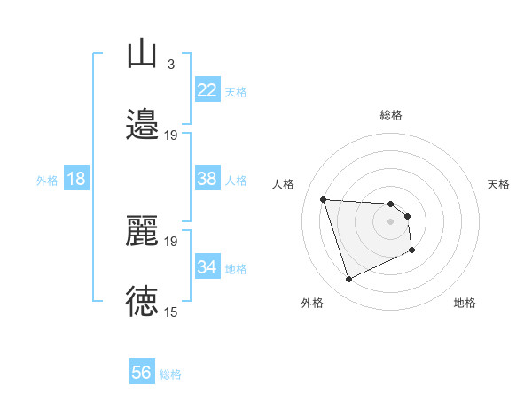 山邉 麗徳さんの天格は22画の1点!