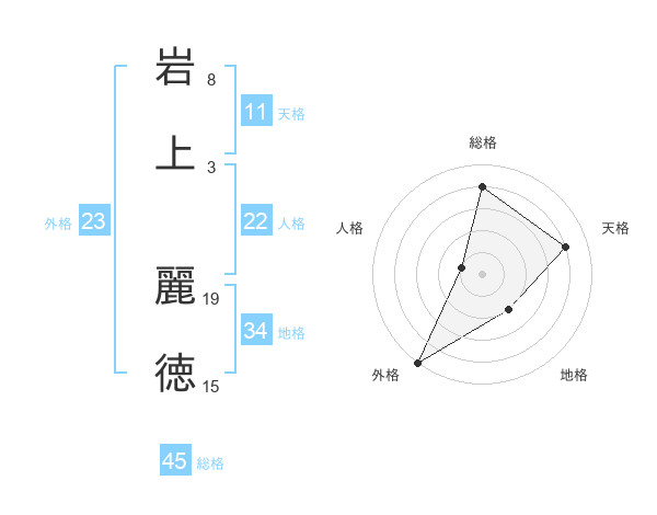 岩上 麗徳さんの総格は45画の4点!