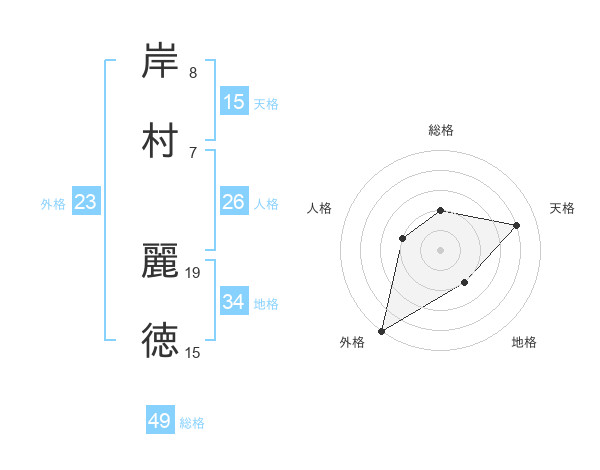 岸村 麗徳さんを姓名の画数から五運を鑑定