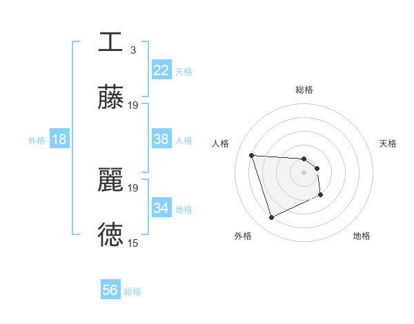 工藤 麗徳さんの総格は56画の1点!