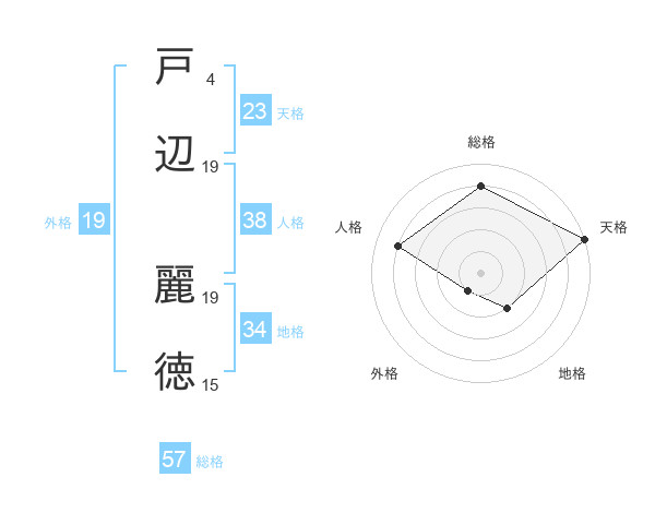 戸辺 麗徳さんの総格は57画の4点!