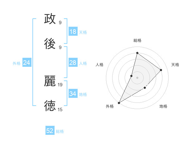 政後 麗徳さんの総格は52画の4点!