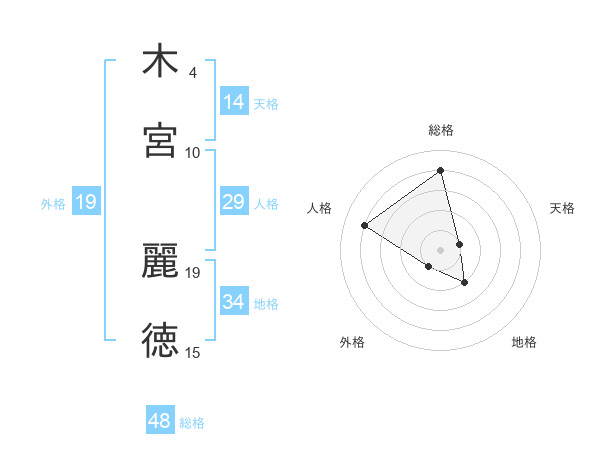 木宮 麗徳さんの総格は48画の4点!