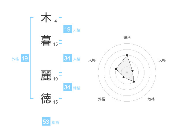 木暮 麗徳さんを姓名の画数から五運を鑑定