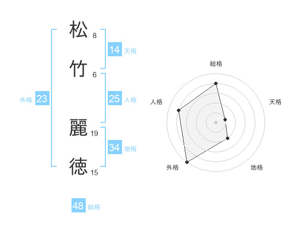松竹 麗徳さんの総格は48画の4点!