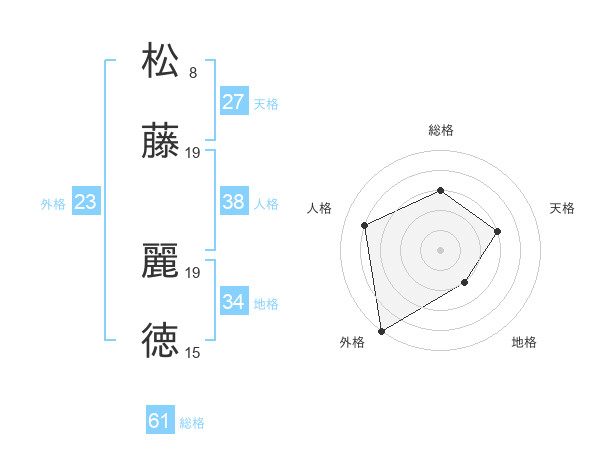 松藤 麗徳さんを姓名の画数から五運を鑑定