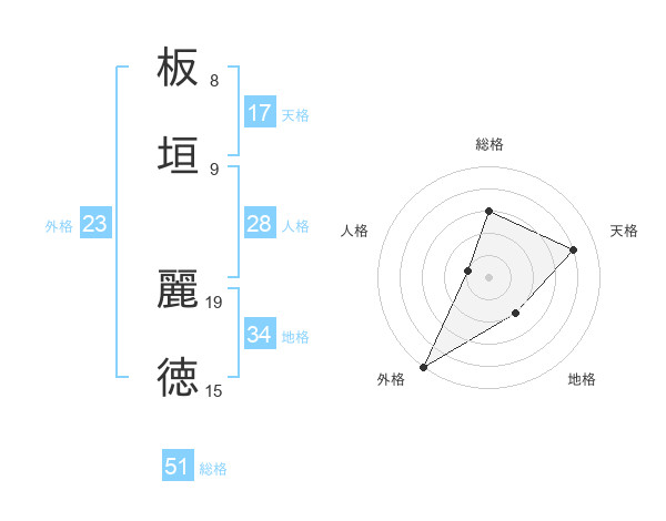 板垣 麗徳さんの総格は51画の3点!
