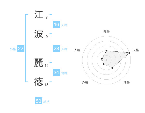 江波 麗徳さんの総格は50画の2点!
