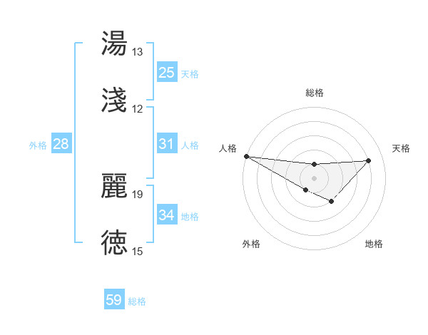 湯淺 麗徳さんを姓名の画数から五運を鑑定