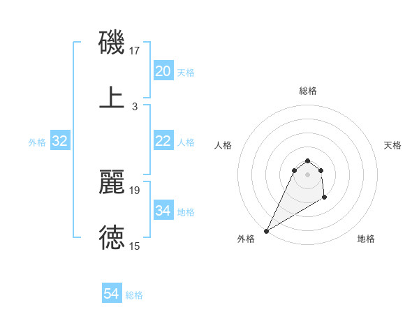 磯上 麗徳さんを姓名の画数から五運を鑑定