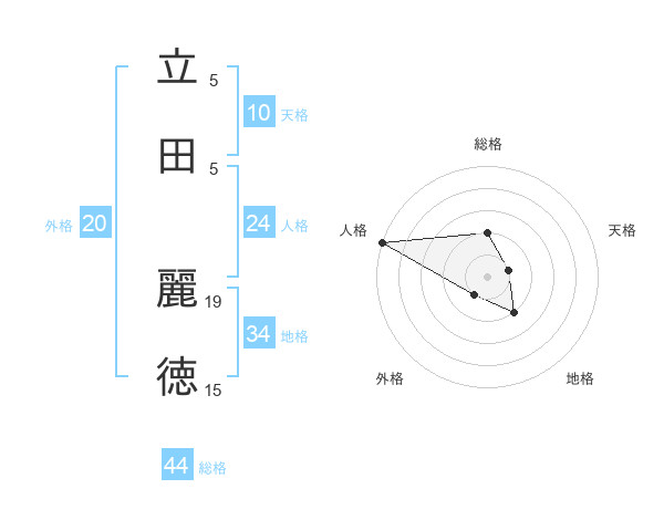 立田 麗徳さんの総格は44画の2点!