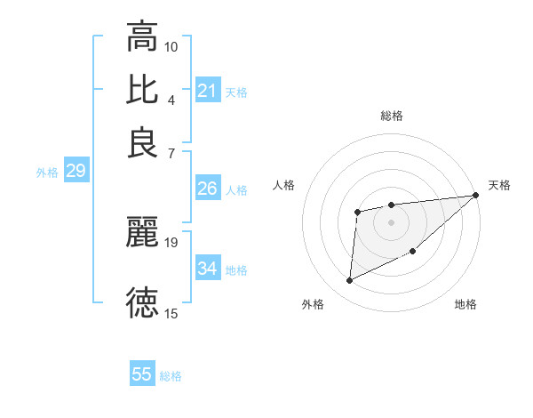 高比良 麗徳さんの天格は21画の5点!