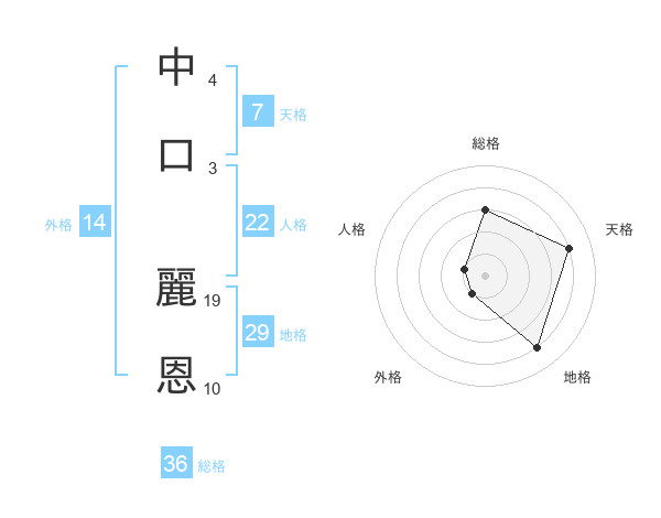 中口 麗恩さんを姓名の画数から五運を鑑定