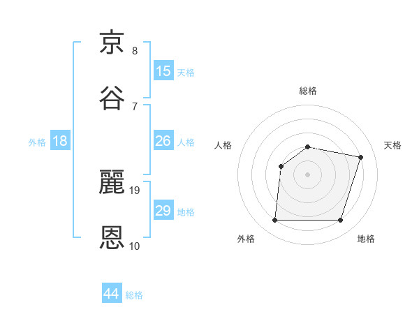 京谷 麗恩さんの天格は15画の4点!