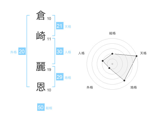 倉崎 麗恩さんの天格は21画の5点!